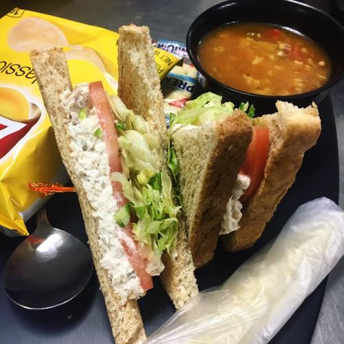 served with lays potato chips OR small assortment of seasonal fruit - with lettuce, tomato and served on toasted wheat. Choose from wheat, white, sourdough, rye, a croissant*,or gluten free bread*.